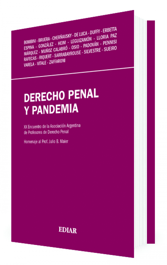 La obra Derecho Penal y Pandemia compila las conferencias del XX Encuentro de la Asociación Argentina de Profesores y Profesoras de Derecho Penal. En homenaje al Prof. Julio B. Maier, el libro contiene las exposiciones brindadas en los distintos paneles del congreso: Privados de libertad y pandemia, Derecho penal y género, Ciberdelitos. Tecnología y control en tiempos de pandemia, Dogmática de las partes general y especial, Delitos contra la salud pública y propagación y Panel de cierre.